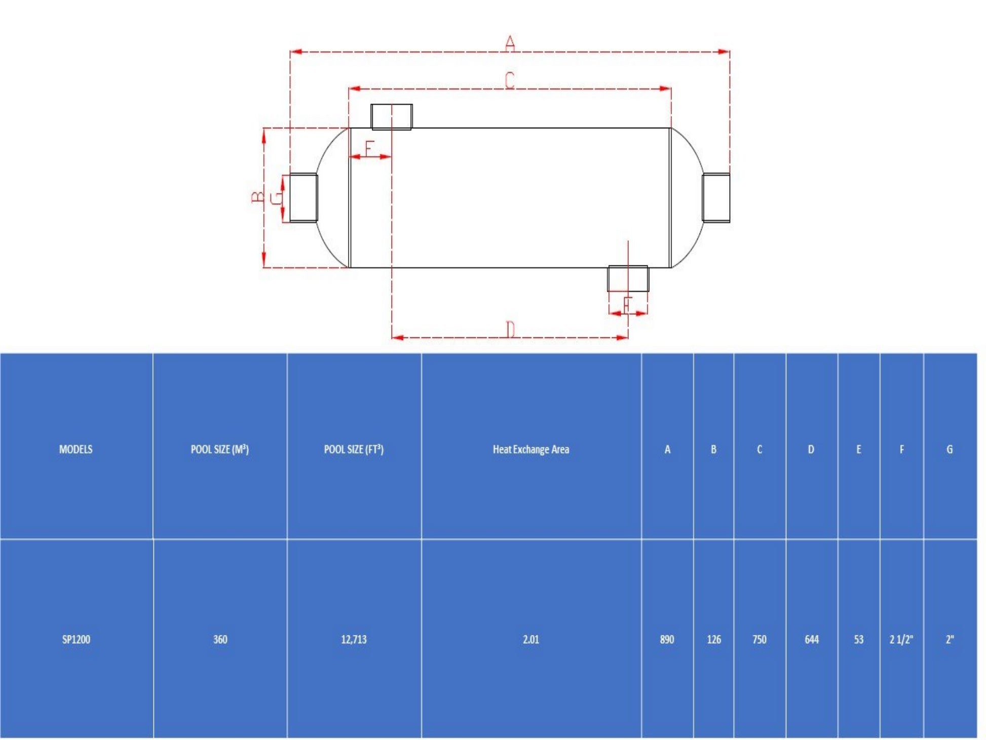 The units are designed for both horizontal and vertical mounting. Port sizes: (to/from Boiler) 2" - (to/from Pool) 2 1/2".
