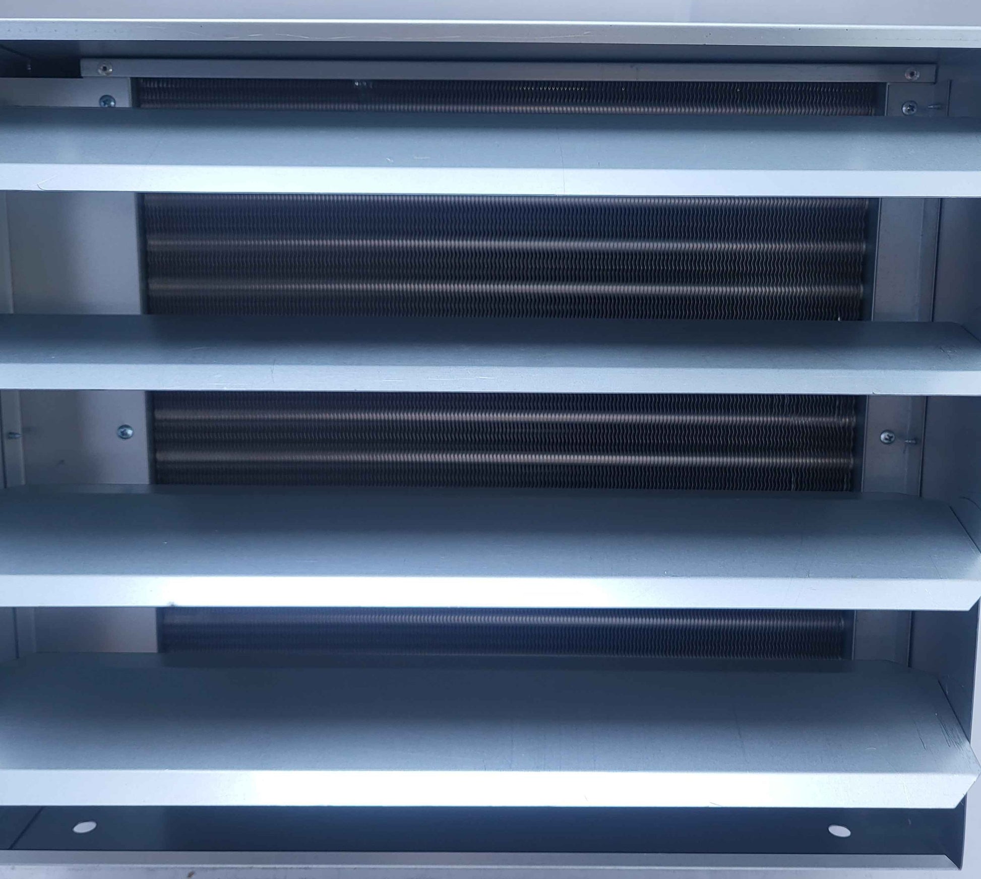 These units can be mounted in any direction and are complete with adjustable front louvers. All units have 1 inch copper inlet and outlets for high flow.
