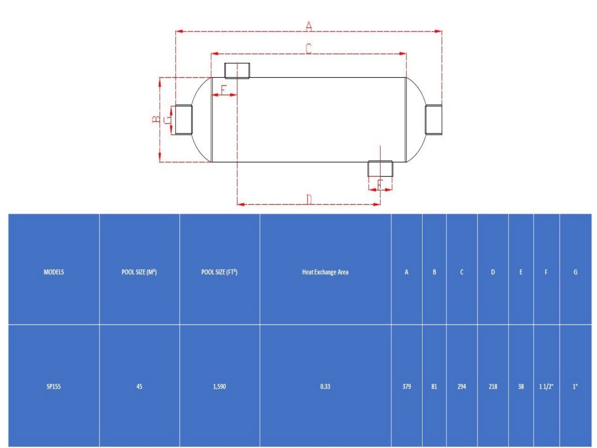The units are designed for both horizontal and vertical mounting. Port sizes: (to/from Boiler) 1" - (to/from Pool) 1 1/2".