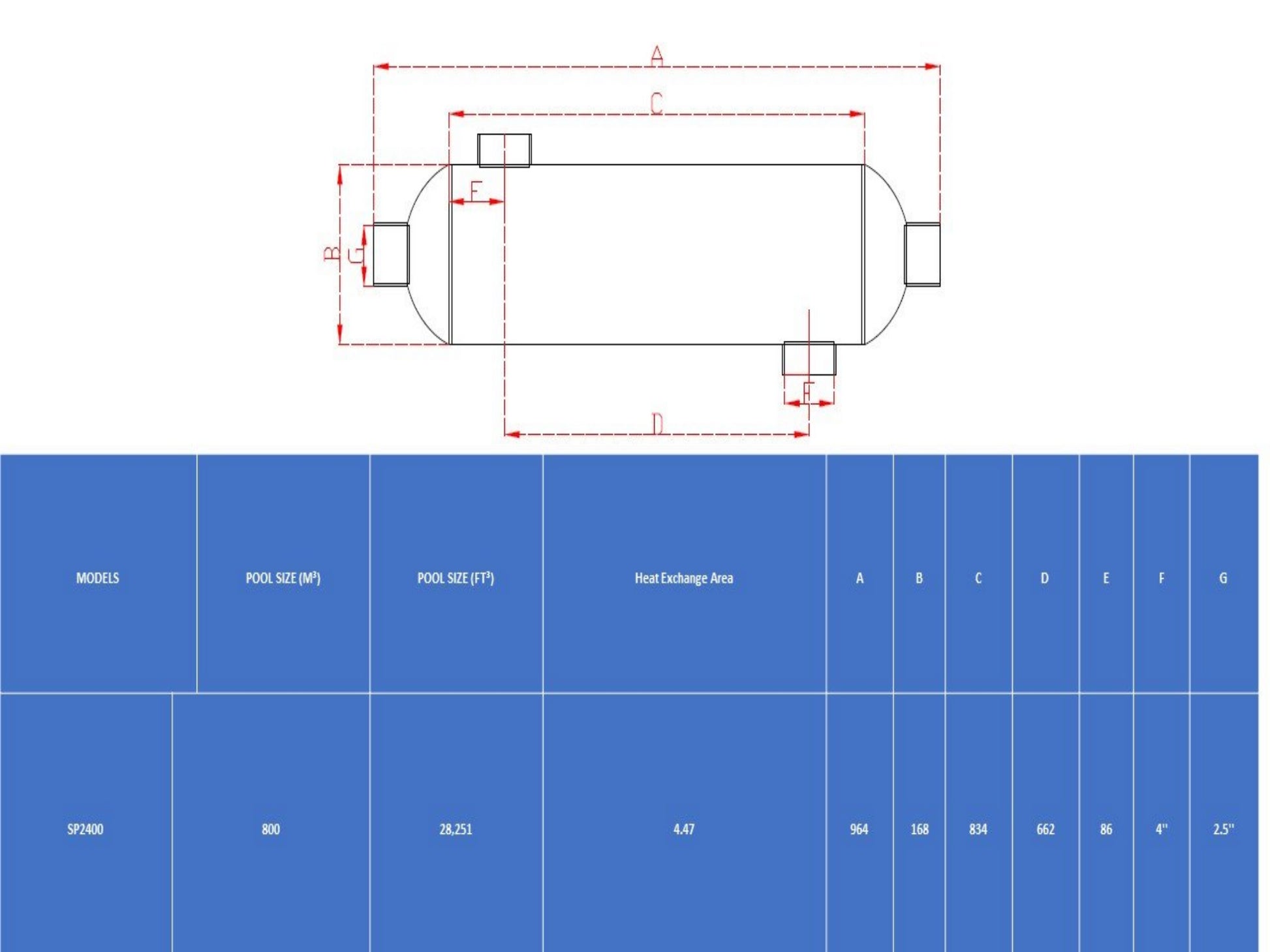 The units are designed for both horizontal and vertical mounting. Port sizes: (to/from Boiler) 2 1/2" - (to/from Pool) 4".