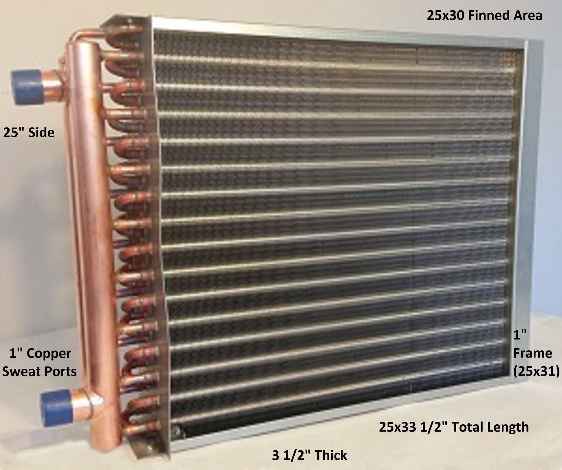 25x30 Water to Air Heat Exchanger~~1" Copper ports w/ EZ Install Front Flange