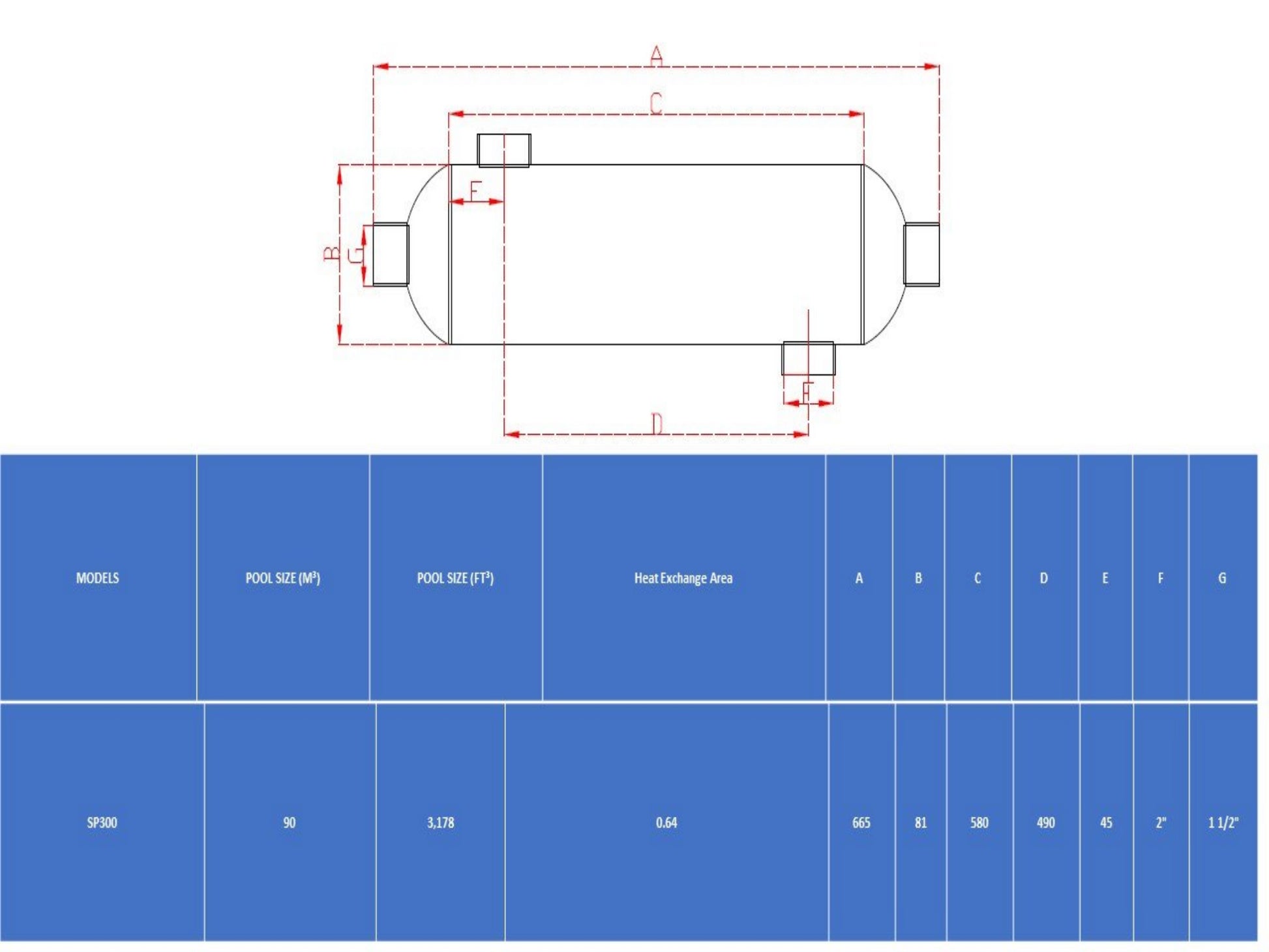 The units are designed for both horizontal and vertical mounting. Port sizes: (to/from Boiler) 1 1/2" - (to/from Pool) 2".
