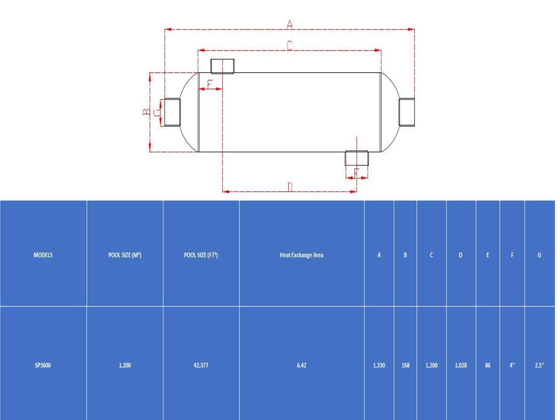 The units are designed for both horizontal and vertical mounting. Port sizes: (to/from Boiler) 2 1/2" - (to/from Pool) 4".
